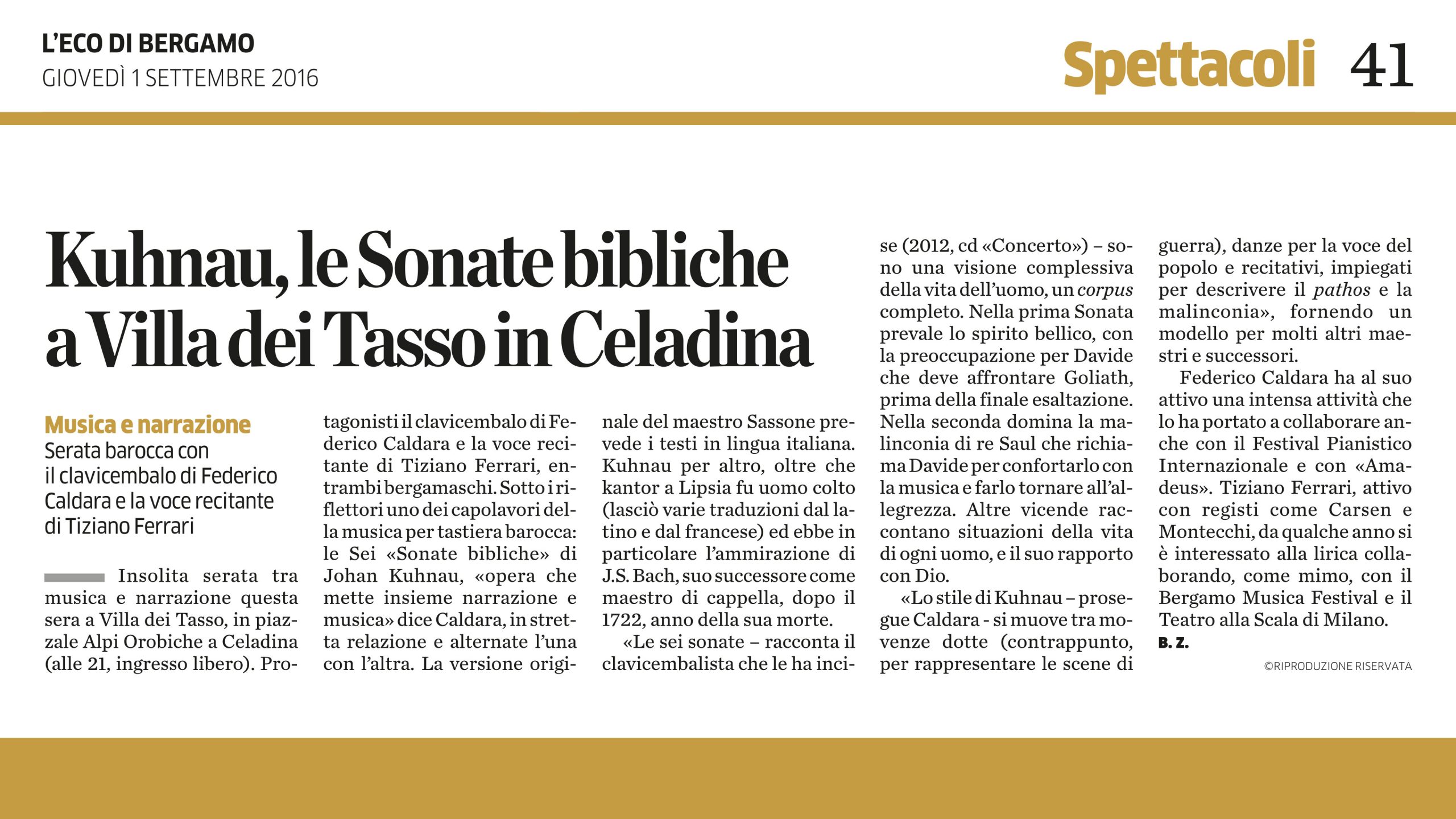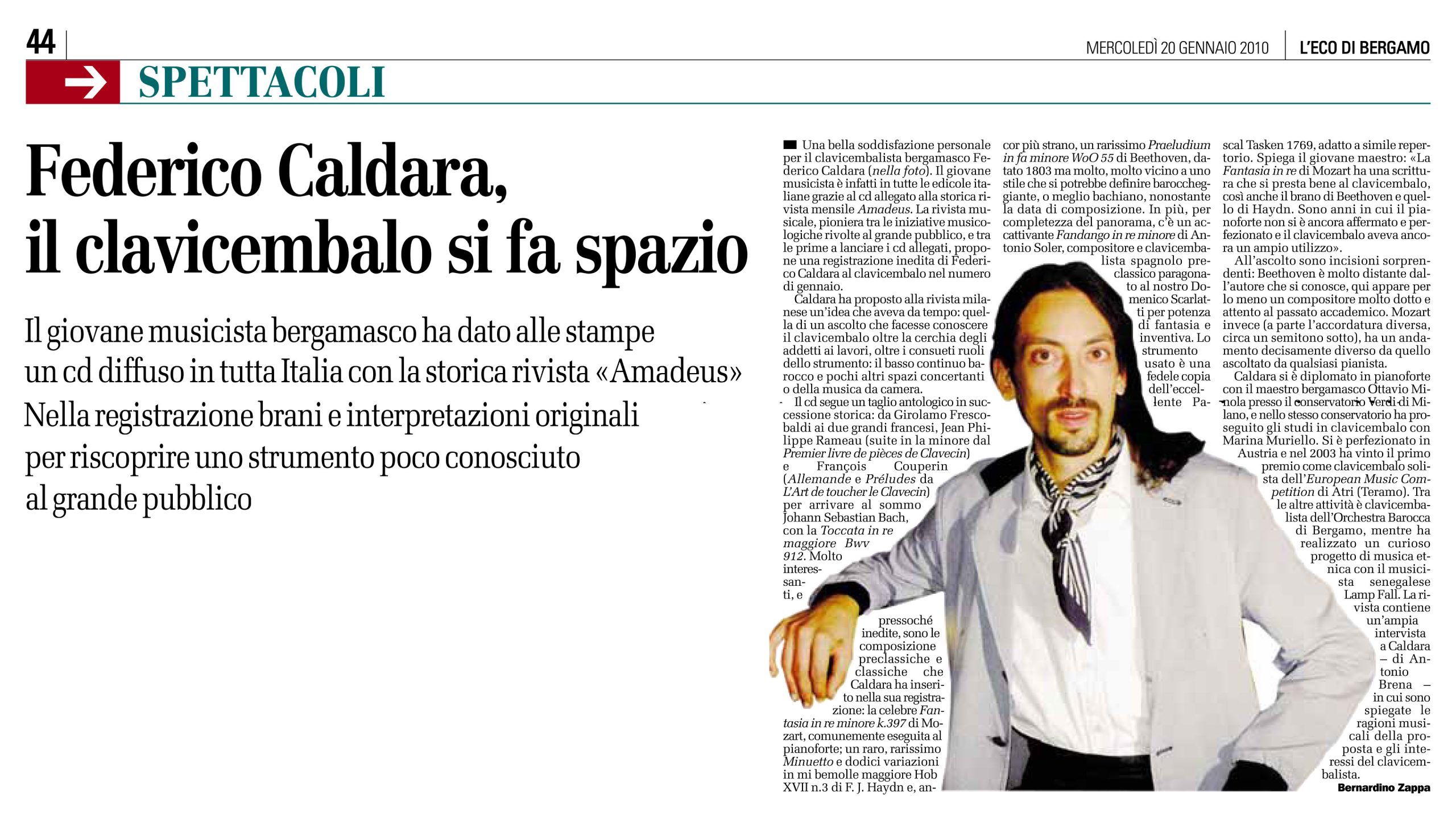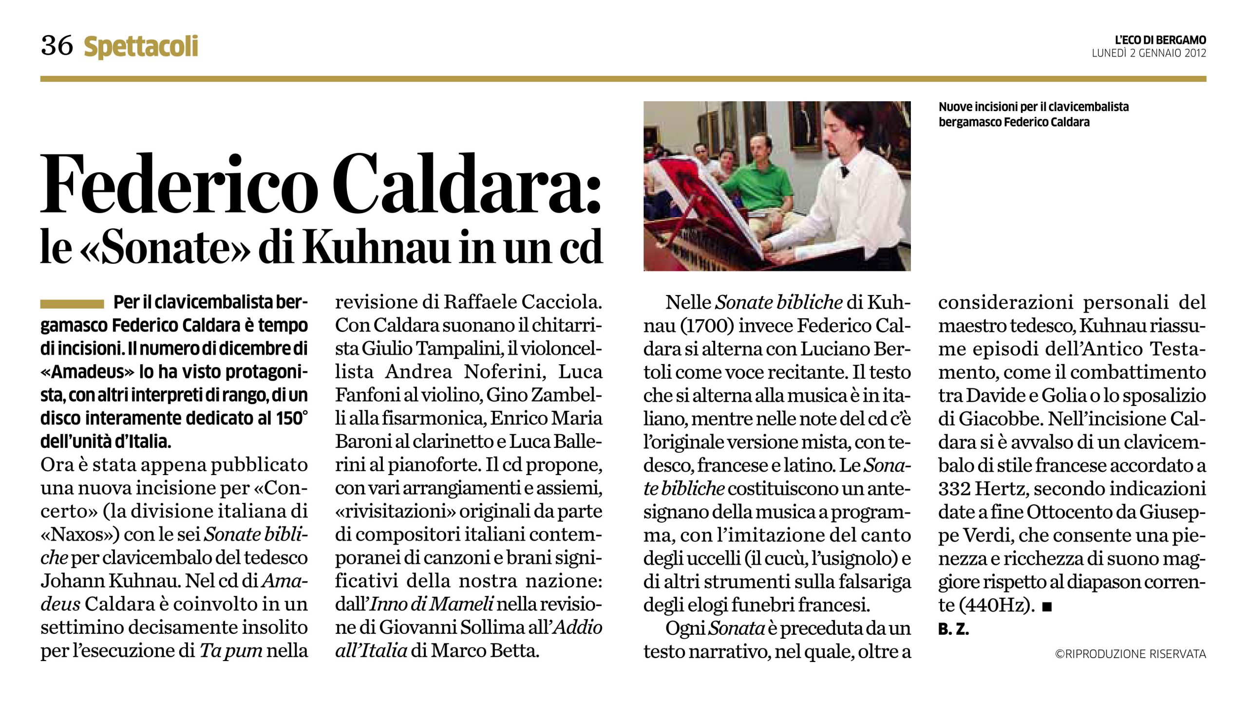 In quest'area sono disponibili alcuni tra gli articoli tratti da riviste e giornali locali e nazionali all'interno dei quali viene citato il M° Federico Caldara in relazione a concerti, eventi, discografia, collaborazioni che lo vedono protagonista o concernenti la sua storia professionale.