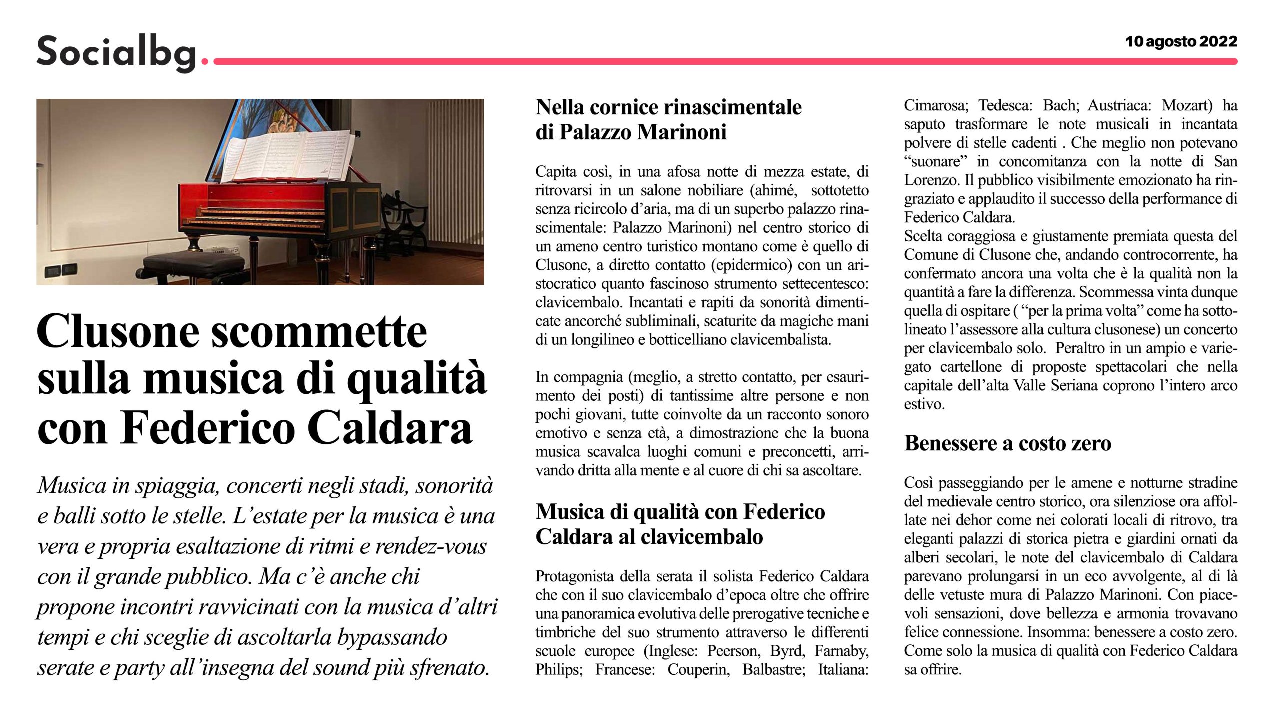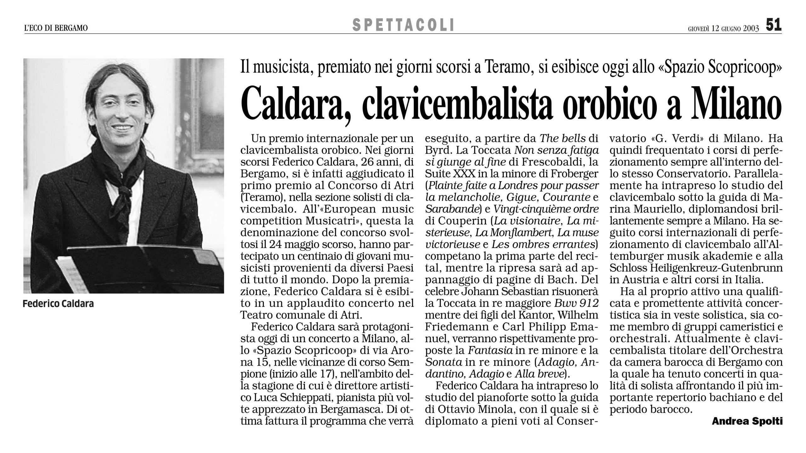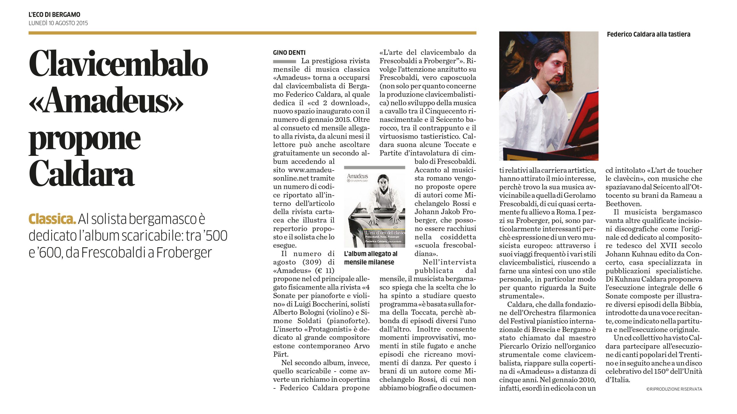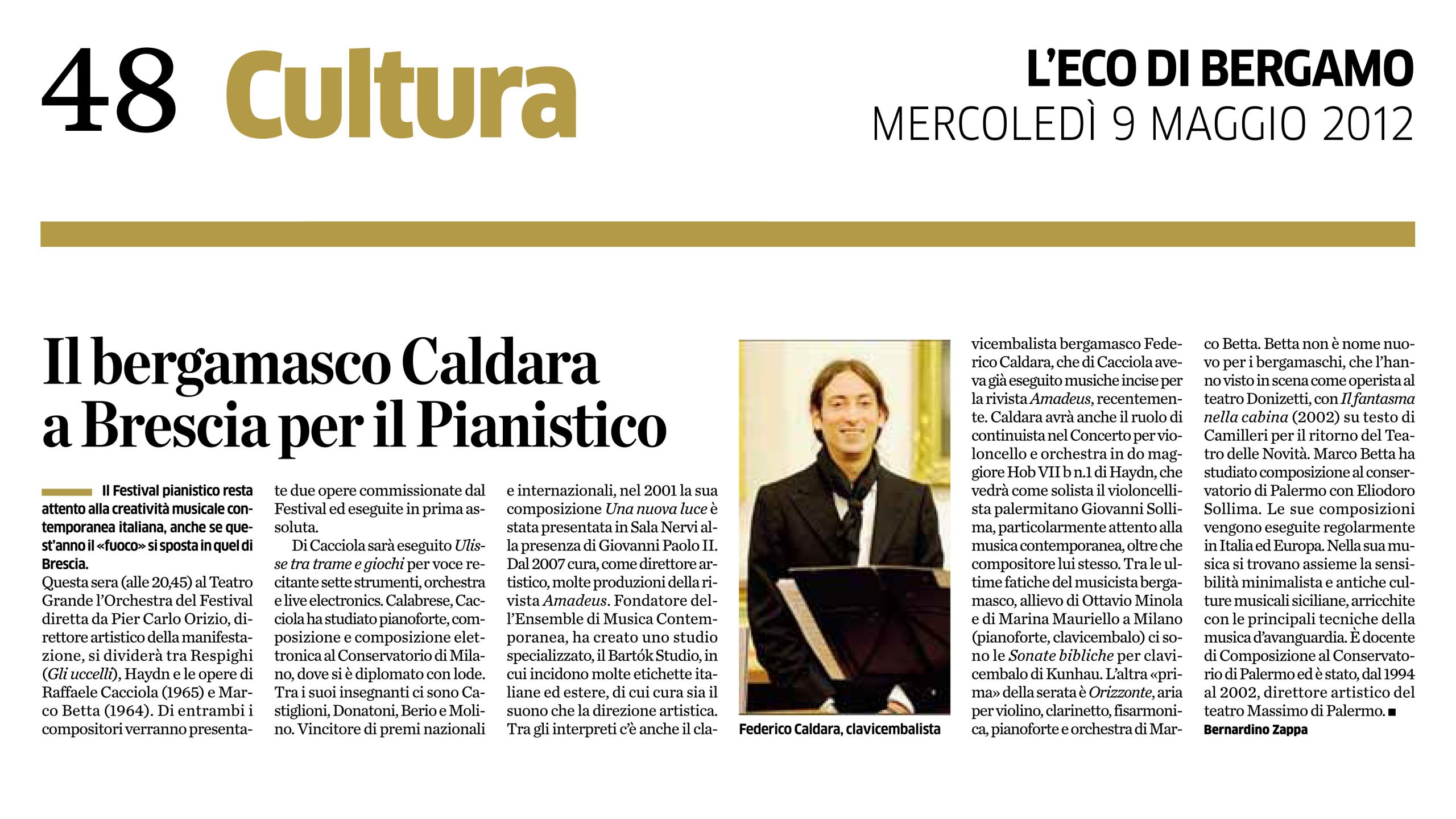 In quest'area sono disponibili alcuni tra gli articoli tratti da riviste e giornali locali e nazionali all'interno dei quali viene citato il M° Federico Caldara in relazione a concerti, eventi, discografia, collaborazioni che lo vedono protagonista o concernenti la sua storia professionale.